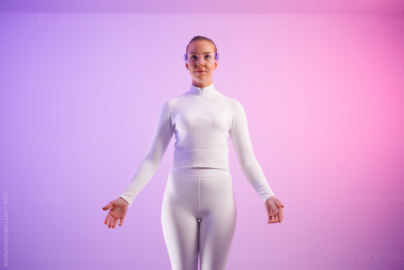 Woman in smartglasses against colored background